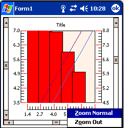 - Zoom mode. The user can outline an area on the graph with the pen, and when the pen is lifted, the graph will zoom onto that area. Zooming in can be done an unlimited amount of times. Menus are available for zooming out. Just tap outside the graphs plot area.