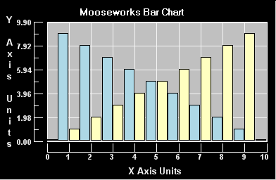You can even define the image to be used as a data point symbol. We've also added extensibility events that allow you to draw on the graph's canvas. This allows you the flexibility to customize the graph's appearance by drawing marker lines, image backgrounds, gradient surfaces, etc. Source code is now available. No redistribution licensing fees and free updates for one full year. Mooseworks Software stands behind our controls, see what other customers have to say.