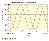 The Trend Graph Control gives you a real time, scrollable chart. Memory is handled by the Trend Graph's circular buffer, so you can add points in real time without worrying about memory growing out of control as time goes on. The Trend Graph also supports: Legends, Zooming, Date/Time, Logarithmic, Inverted axes, Right and Left Y-Axes, Markers, Cursor Values, Alarms, and more.